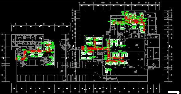本工程为空调风系统均平面图,采用风机盘管加新风的空调系统。气流组织根据不同功能要求、建筑形式,包括上送上回、侧送风上回风等。