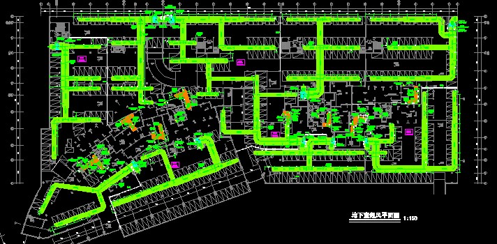 本工程设机械排烟系统,机械排烟系统按防烟分区划分,每个防火分区利用挡烟垂壁划分为两个防烟分区,每个防烟分区面积不大于2000平方米;机械排风系统兼机械排烟系统。有直接对外车道的为车道自然补风,其余为直通室外的天井自然补风。排烟量按实际层高的6次/小时(换气次数)计。风机选用双速风机,平时低速运行排风,火灾时高速运行排烟